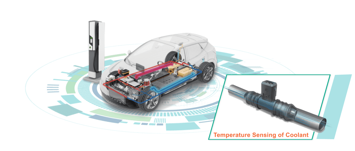 對電動車來說,冷卻系統(tǒng)在優(yōu)化電池和動力系統(tǒng)的效能上,扮演重要角色。由于液體冷卻方案具有高熱容量和導熱性,是目前許多電動車首選的熱管理解決方案。而準確量測冷卻回路中的液體溫度,有助熱管理系統(tǒng)維持電池與其他部件的最佳運作溫度。為滿足電動車對精準量測溫度與節(jié)省整車空間的需求,興勤開發(fā)了一種緊湊設計的NTC溫度傳感器,提供調(diào)節(jié)冷卻回路溫度所需的精確數(shù)據(jù)。