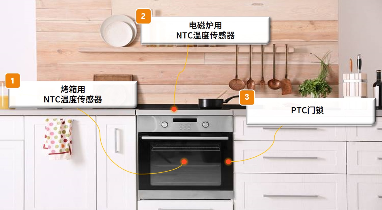 現(xiàn)代電烤箱提供熱對流功能,達成快速均勻的烘烤效果,而多功能烤箱如蒸烤箱、微波烤箱則提供不同烹調(diào)方式和溫度設定。為了控制加熱,烤箱內(nèi)通常須安裝溫度傳感器,偵測熱空氣溫度。適用于烤箱的NTC溫度傳感器,封裝于不銹鋼外殼并使用耐高溫線材,傳感器(頭部)可測量高達300°C的溫度。