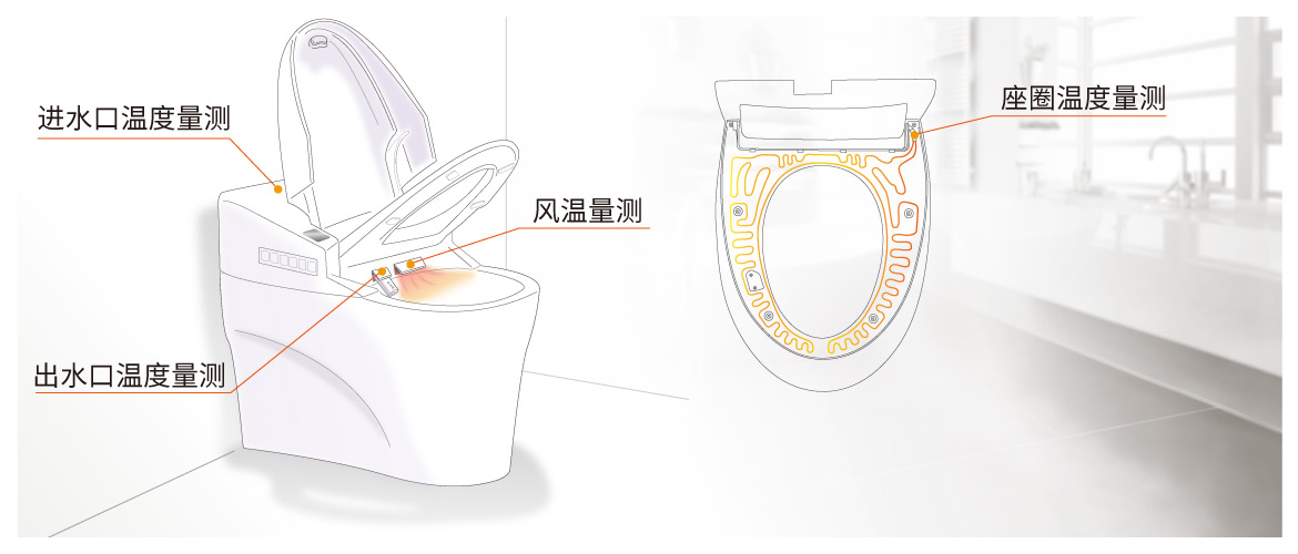 隨著人們的生活水平和消費能力的提升,以及智能技術(shù)在家居生活中的應(yīng)用普及,智能馬桶的使用也逐漸出現(xiàn)在越來越多的家庭中。智能馬桶自誕生以來,一直都是以加熱、清洗、沖水為三個最基礎(chǔ)的功能。在此基礎(chǔ)功能和技術(shù)支持下,發(fā)展出的創(chuàng)新功能日漸增多。目前市場上大多智能馬桶不僅集恒溫座圈、溫水洗凈、自動烘干等多項功能于一身,甚至有噴頭自潔、活性炭除臭、夜燈設(shè)計、音樂搭載、按摩等人性化功能,為居民提供了便捷的潔身功效和舒適的清洗體驗,滿足了居民對舒適生活和對健康生活的需求。興勤針對智能馬桶開發(fā)了具備座溫偵測、水溫偵測、風溫偵測功能的溫度傳感器,為智能馬桶的人性化設(shè)計保駕護航。